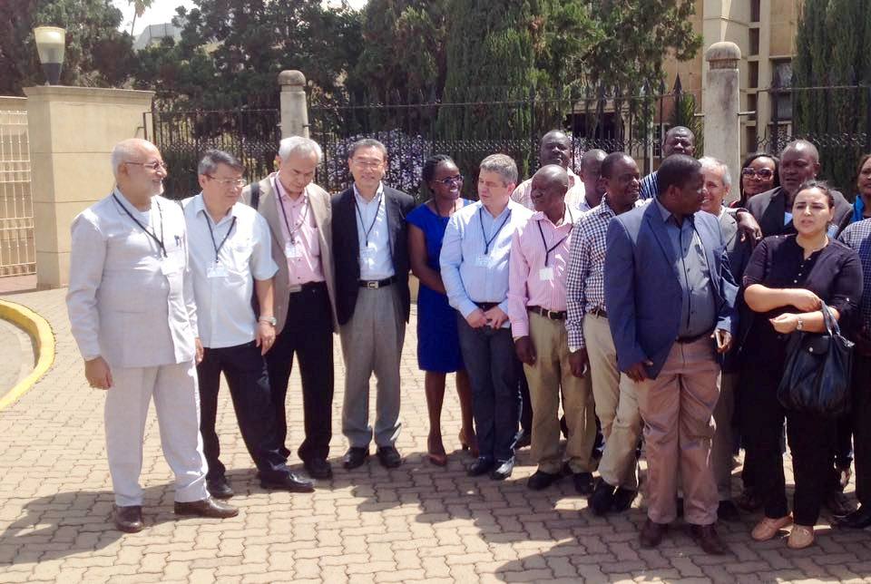 ケニアの国民議会へ 掲載日:2015.10.03 ケニアの国民議会へ。議場で議長席に座らせて頂きましたがお国柄がよくわかりました(色彩が鮮やかでしょう)。 今回の視察にはケニアの国会議員は勿論、ウガンダ、マラウイ、シエラレオネ、エチオピア、ザンビア、カメルーン等アフリカ各国の政治家がいましたが民主主義を支える代議制のハード面-器(国会議事堂)についてお互い認識を新たにしました。因みにソフト面−制度論ではケニアは大統領制そして二院制であり、我が国の議院内閣制とは異なります。 ケニア中央医学研究所 一覧に戻る ケニア・ナイロビ国際会議②
